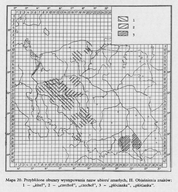 Przybliżone obszary występowania nazw ubioru zmarłych, II/ Komentarze do Polskiego Atlasu Etnograficznego (mapy)