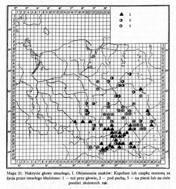 Nakrycie głowy zmarłego, I/ Komentarze do Polskiego Atlasu Etnograficznego (mapy)