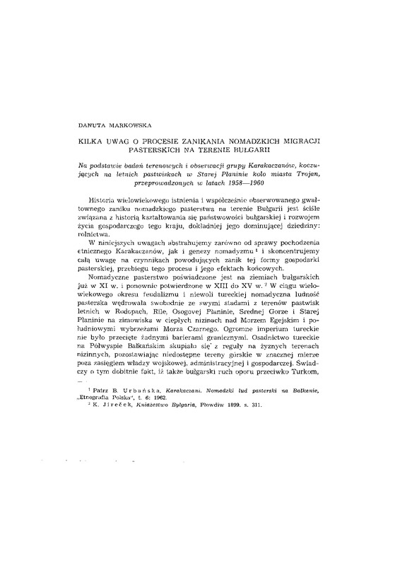 Kilka uwag o procesie zanikania nomadzkich migracji pasterskich na terenie Bułgarii / ETNOGRAFIA POLSKA 1962 t.6