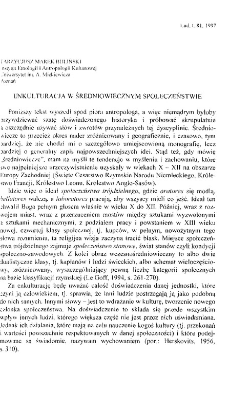 Enkulturacja w średniowiecznym społeczeństwie / LUD 1997 t.81