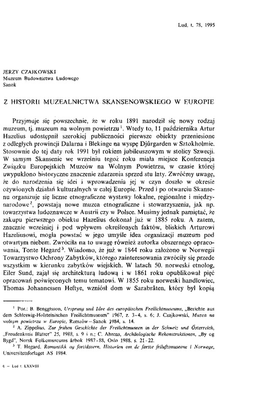 Z historii muzealnictwa skansenowskiego w Europie / LUD 1995 t.78