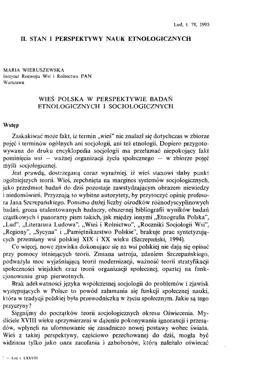 Wieś polska w perspektywie badań etnologicznych i socjologicznych/ LUD 1995 t.78