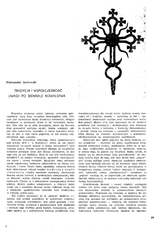 - Tradycja i współczesność. Uwagi po biennale kowalstwa / Polska Sztuka Ludowa - Konteksty 1980 t.34 z.1