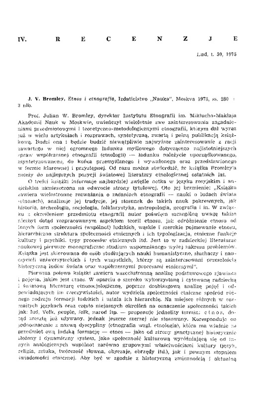 Recenzje, przeglądy wydawnictw i czasopism / LUD 1975 t.59