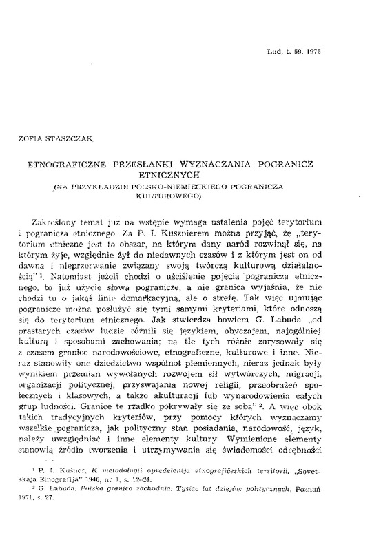 Etnograficzne przesłanki wyznaczania pogranicz etnograficznych / LUD 1975 t.59