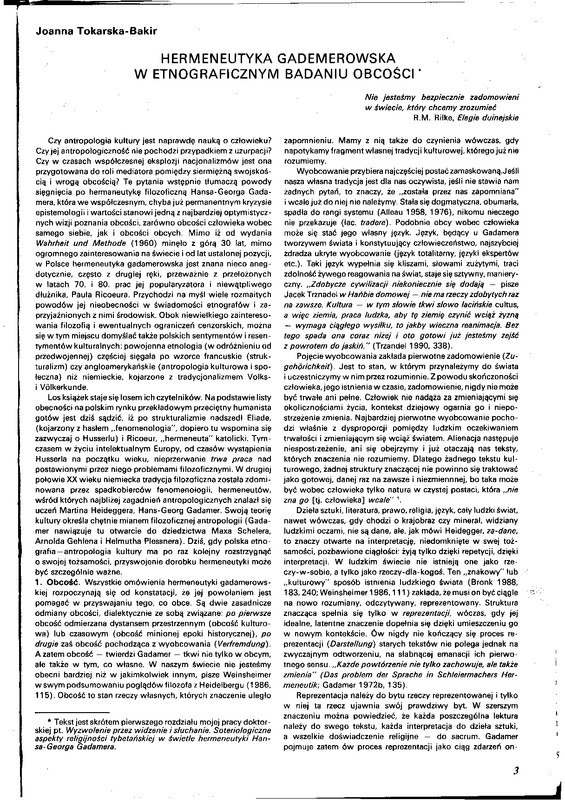 - Hermeneutyka Gadamerowska w etnograficznym badaniu obcości / Polska Sztuka Ludowa - Konteksty 1992 t.46 z.1