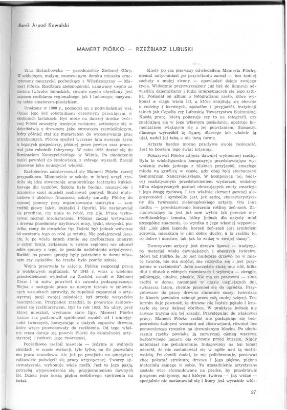 Mamert Piórko - rzeźbiarz lubuski / Polska Sztuka Ludowa - Konteksty 1972 t.26 z.2