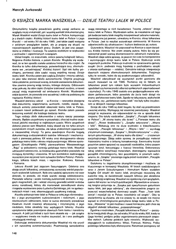 - O książce Marka Waszkiela "Dzieje teatru lalek w Polsce" / Polska Sztuka Ludowa - Konteksty 1991 t.45 z.3-4