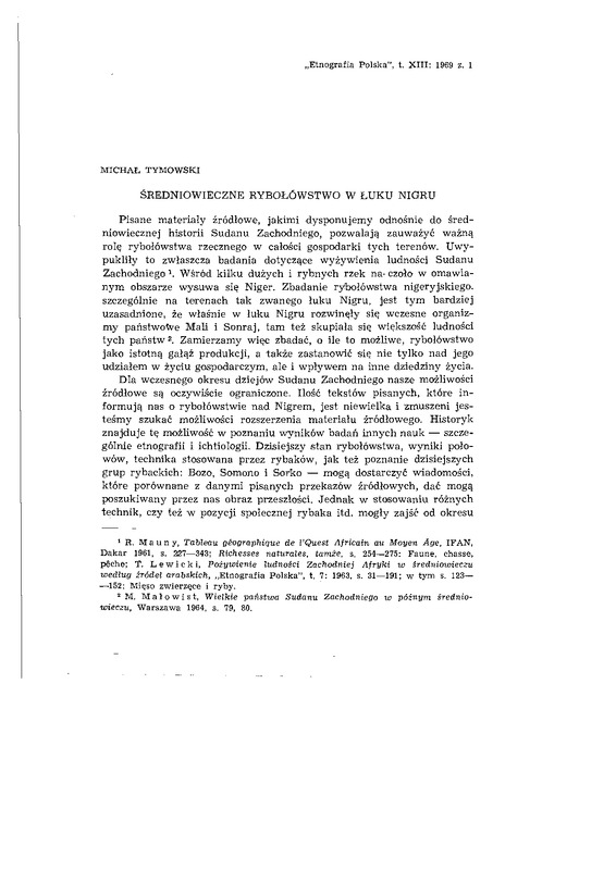 Średniowieczne rybołówstwo w łuku Nigru / ETNOGRAFIA POLSKA 1969 t.13 z.1