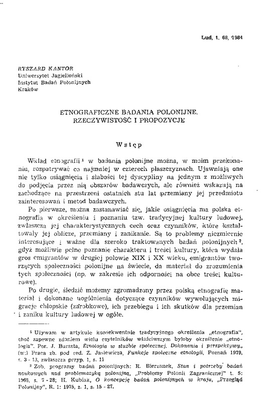 - Etnograficzne badania polonijne / LUD 1984 t.68