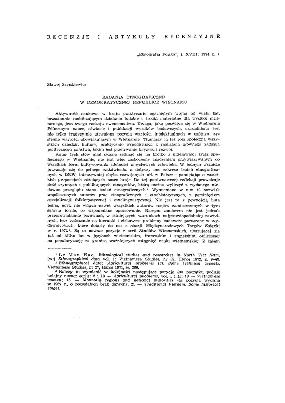 - Recenzje i artykuły recenzyjne / ETNOGRAFIA POLSKA 1974 t.18 z.1