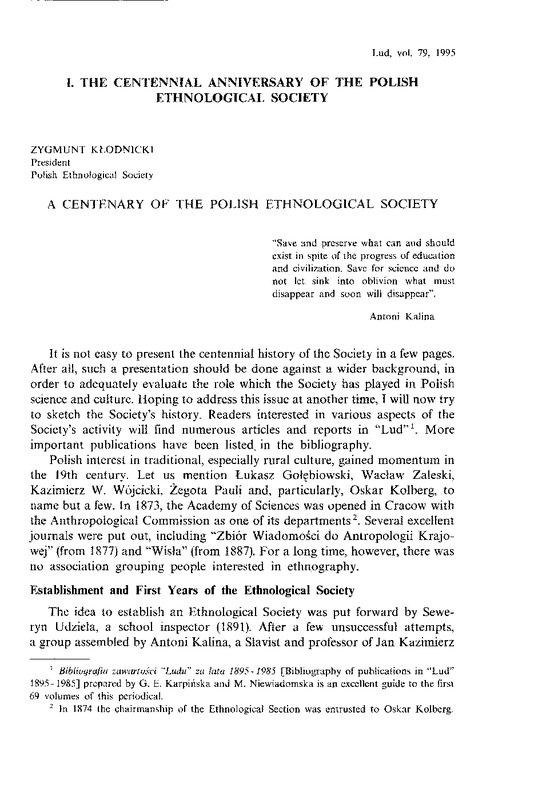 - A Centenary of the Polish Ethnological Society / LUD 1995 t.79