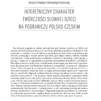 Interetniczny charakter twórczości słownej na pograniczu polsko-czeskim / Dziedzictwo kulturowe jako klucz do tożsamości pogranicza polsko-czeskiego