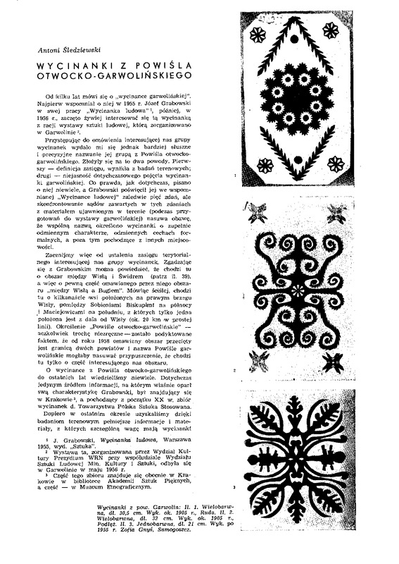Wycinanki z Powiśla otwocko-garwolińskkiego/ Polska Sztuka Ludowa 1962 t.16 z.4
