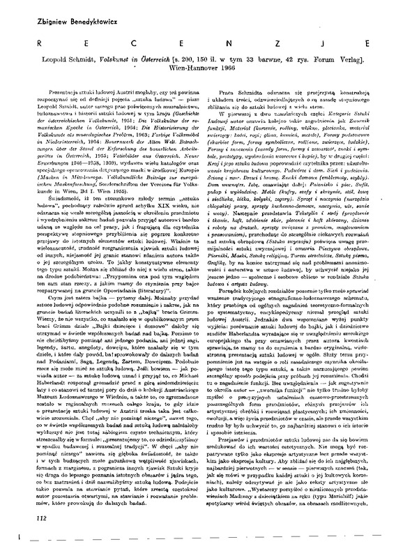- Recenzje: Leopold Schmidt, "Volskunst in Osterreich" / Polska Sztuka Ludowa - Konteksty 1981 t.35 z.2
