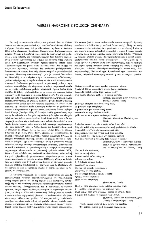 - Wiersze nagrobne z polskich cmentarzy / Polska Sztuka Ludowa - Konteksty 1986 t.40 z.1-2