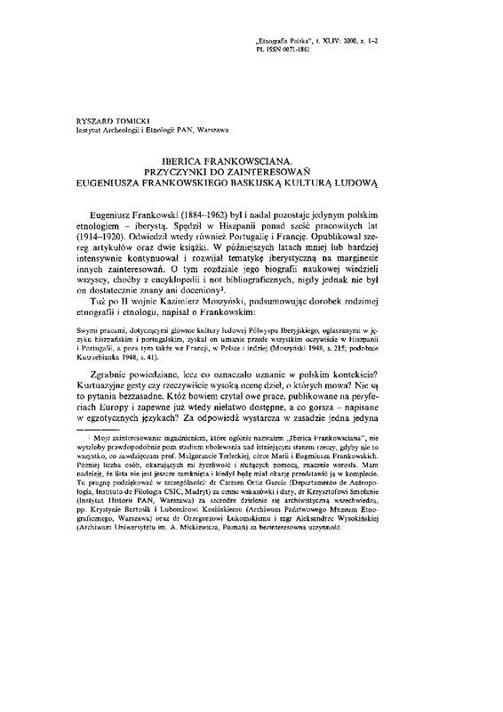 Iberica Frankowsciana. Przyczynki do zainteresowań Eugeniusza Franowskiego baskijską kulturą ludową / ETNOGRAFIA POLSKA 2000 t.44