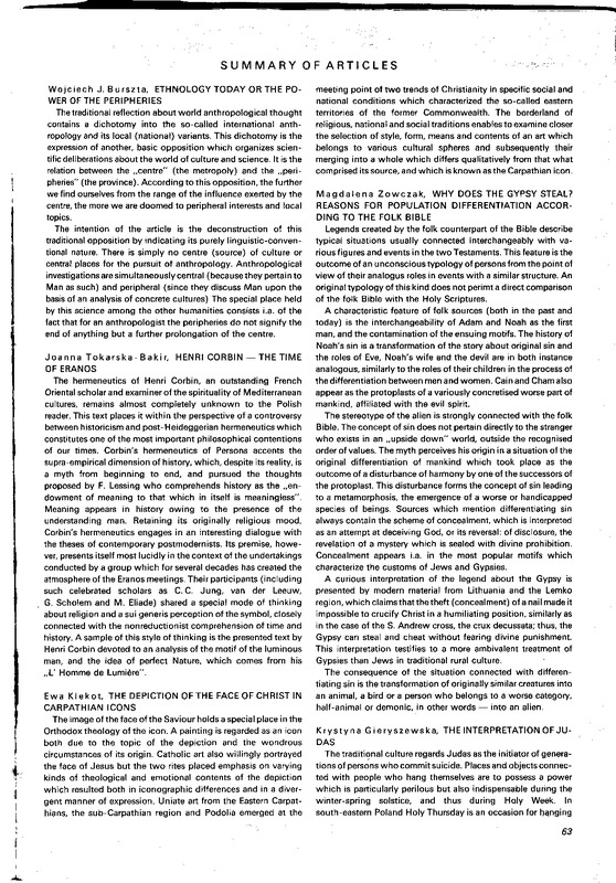 Summary of articles / Polska Sztuka Ludowa - Konteksty 1992 t.46 z.1