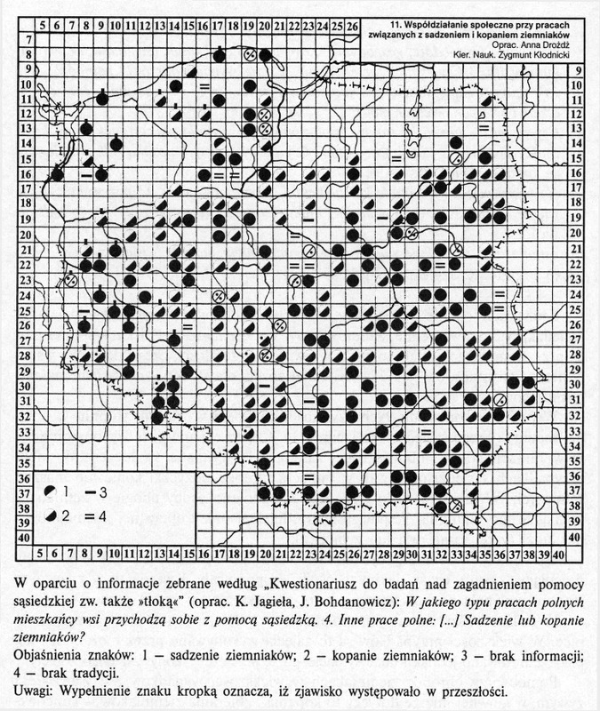 Współdziałanie społeczne przy pracach związanych z sadzeniem i kopaniem ziemniaków / Komentarze do Polskiego Atlasu Etnograficznego (mapy)