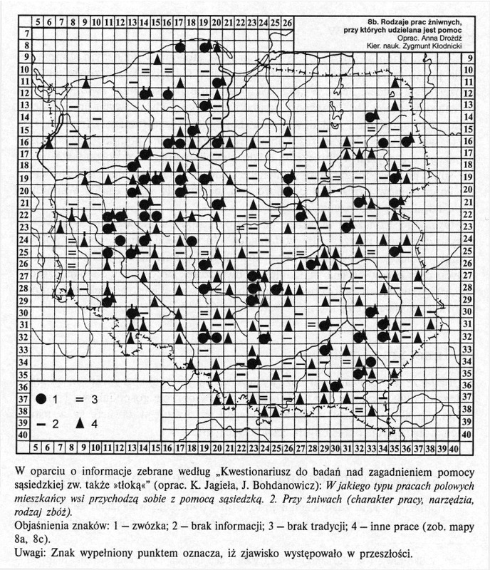 Komentarze do Polskiego Atlasu Etnograficznego t.7 : Pomoc wzajemna.Współdziałanie społeczne i pomoc sąsiedzka s.56 (mapa nr 8 b)