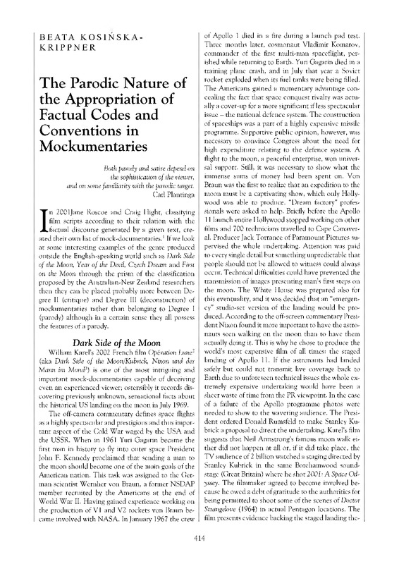 The Parodic Nature of the Appropriation of Factual Codes and Conventions in Mockumentaries / Polska Sztuka Ludowa - Konteksty 2014 Special Issue