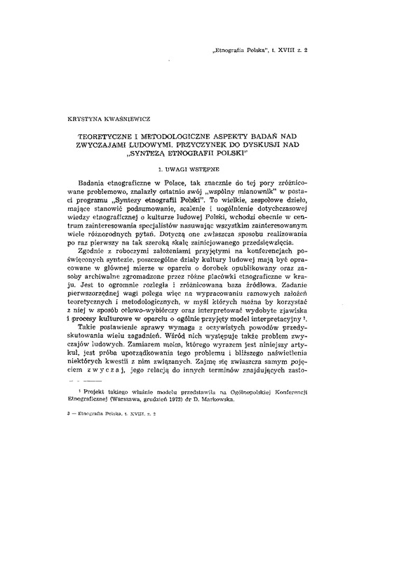 Teoretyczne i metodologiczne aspekty badań nad zwyczajami ludowymi. Przyczynek do dyskusji nad "Syntezą etnografii Polski" / ETNOGRAFIA POLSKA 1974 t.18 z.2