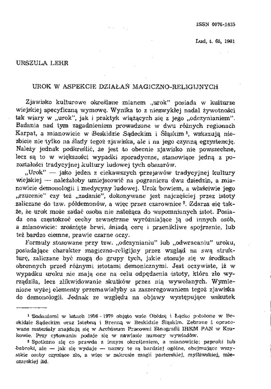 Urok w aspekcie działań magiczno-religijnych / LUD 1981 t.65