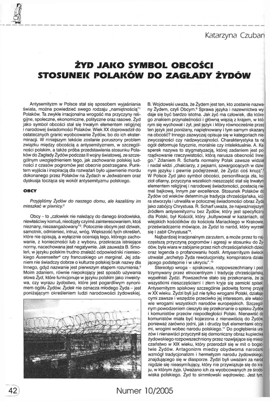 - Żyd jako symbol obcości, stosunek Polaków do Żydów/ Barbarzyńca 2005 nr10