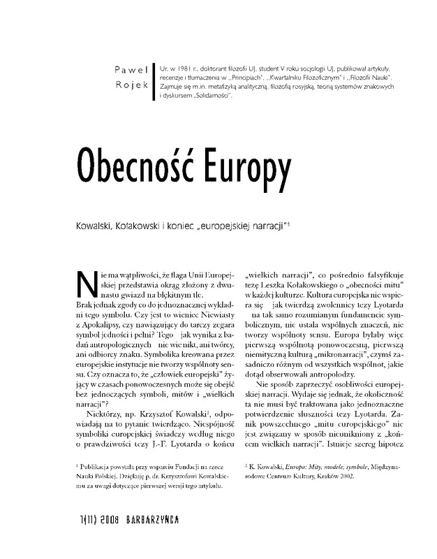 - Obecność Europy/ Barbarzyńca 2008 nr 1 (11)