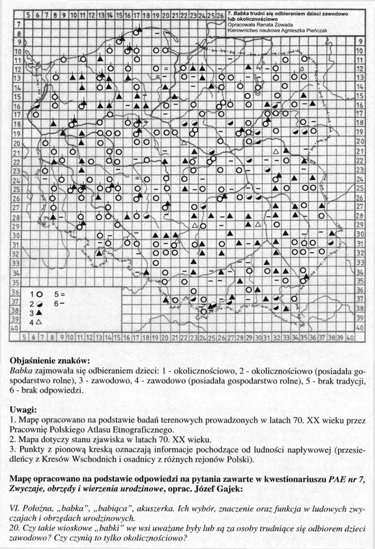 'Babka' trudni się odbieraniem dzieci zawodowo lub okolicznościowo/ Komentarze do Polskiego Atlasu Etnograficznego (mapy)