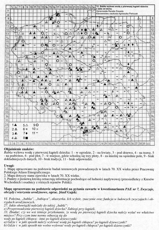 'Babka' wylewa wodę z pierwszej kąpieli dziecka z dala od domu/ Komentarze do Polskiego Atlasu Etnograficznego (mapy)