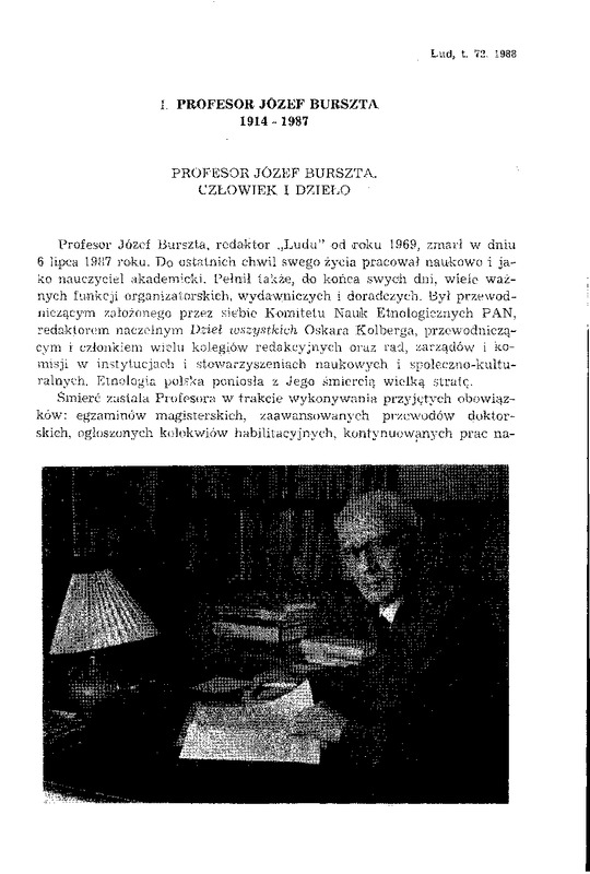 - Profesor Józef Burszta / LUD 1988 t.72