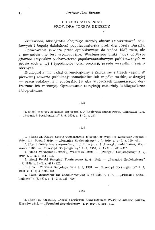 - Bibliografia prac prof.dra Józefa Burszty/ LUD 1988 t.72