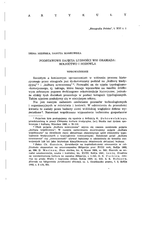 Podstawowe zajęcia ludności wsi Gramada: rolnictwo i hodowla / ETNOGRAFIA POLSKA 1972 t.16 z.1