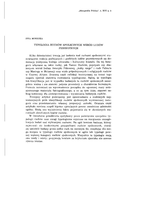 Typologia ruchów społecznych wśród ludów pierwotnych / ETNOGRAFIA POLSKA 1972 t.16 z.1