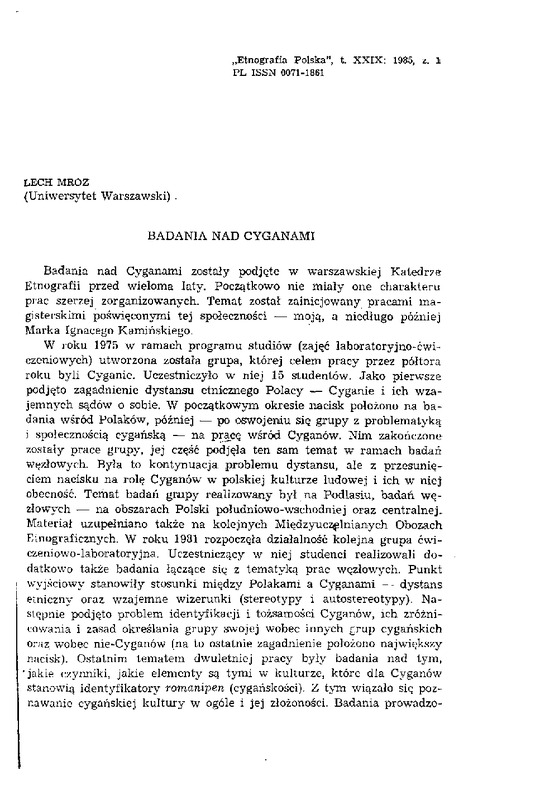 - Badania nad Cyganami / ETNOGRAFIA POLSKA 1985 t.29 z.1