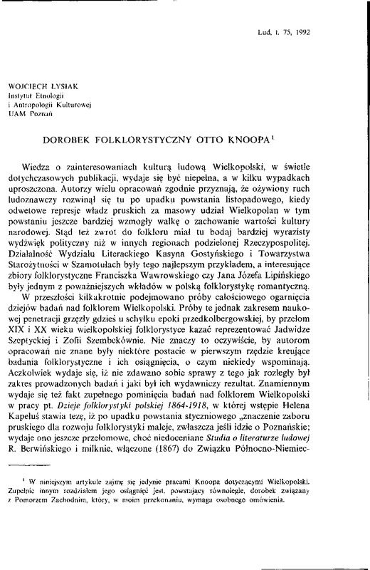 - Dorobek folklorystyczny Otto Knoopa / LUD 1992 t.75