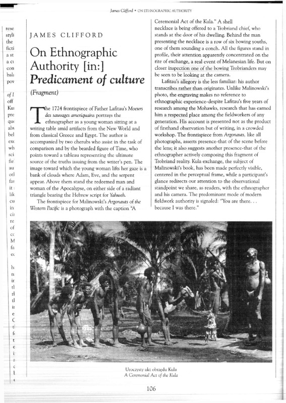 On Ethnographic Authority [in:] Predicament of culture=O autorytecie etnograficznym (w:) Kłopoty z kulturą / Polska Sztuka Ludowa - Konteksty 2000 t.54 z.1-4
