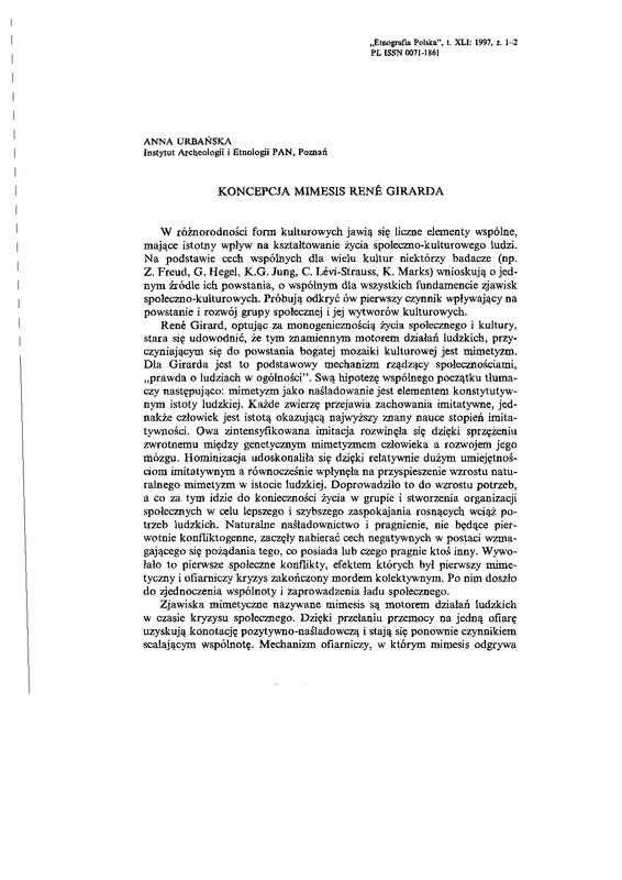 Koncepcja mimesis René Girarda / ETNOGRAFIA POLSKA 1997 t.41