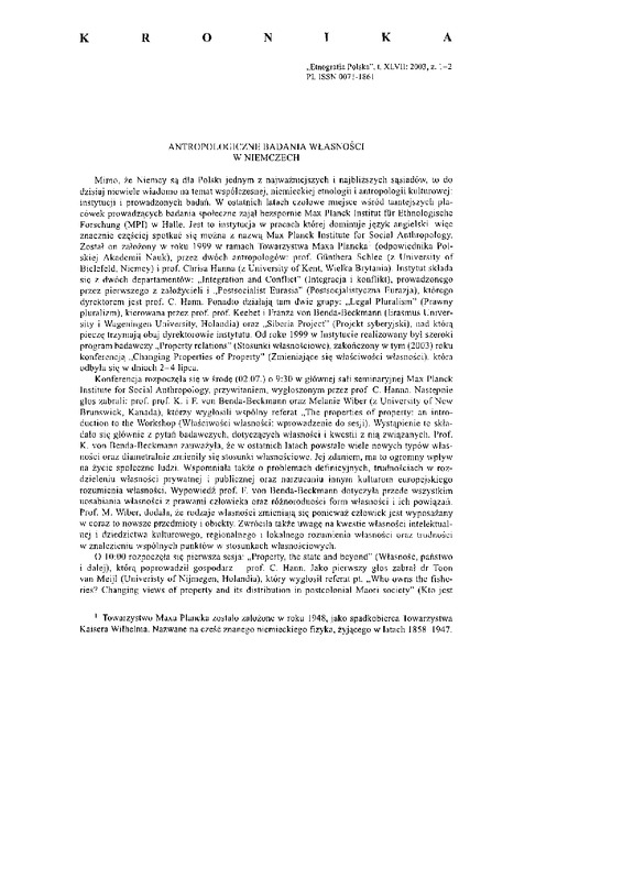 - Kronika / ETNOGRAFIA POLSKA 2003 t.47