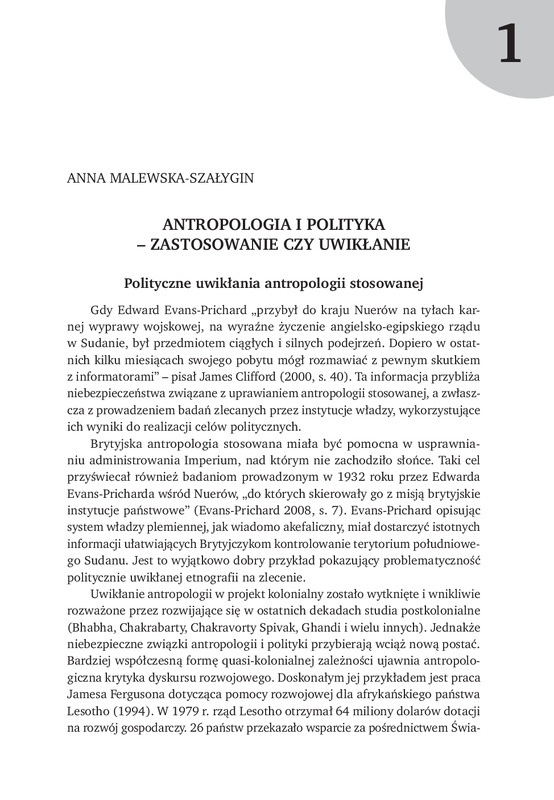 Antropologia i polityka - zastosowanie czy uwikłanie/ Antropologia stosowana