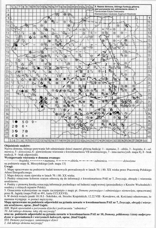 Nazwa demona, którego główną funkcją jest porywanie lub odmienianie dzieci, II/ Komentarze do Polskiego Atlasu Etnograficznego (mapy)