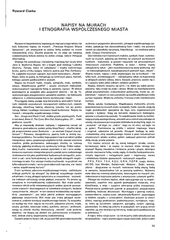 - Napisy na murach i etnografia współczesnego miasta / Polska Sztuka Ludowa - Konteksty 1990 t.44 z.2