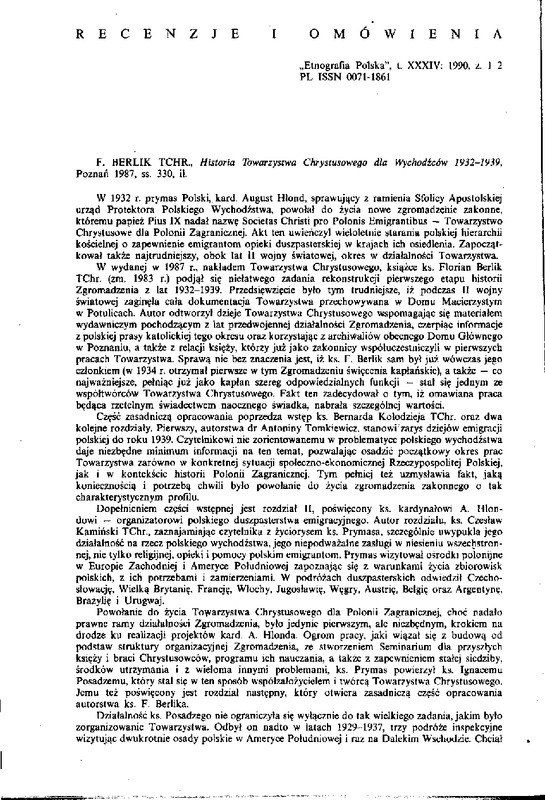 - Recenzje i omówienia / ETNOGRAFIA POLSKA 1990 t.34