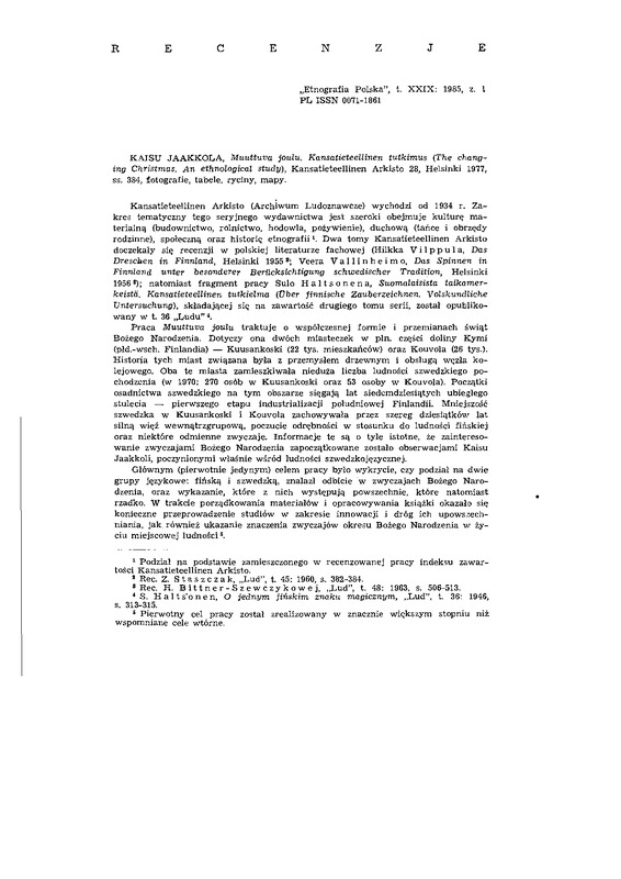 - Recenzje / ETNOGRAFIA POLSKA 1985 t.29 z.1