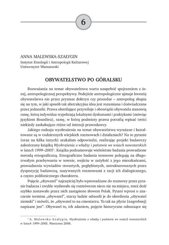 Obywatelstwo po góralsku / Obywatelstwo na progu XXI wieku: konteksty prawne i kulturowe