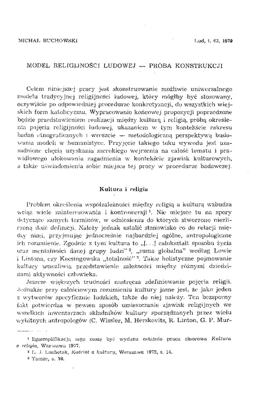 Model religijności ludowej - próba konstrukcji / LUD 1979 t.63