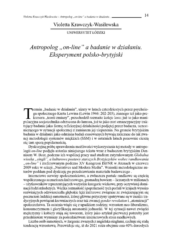 Antropolog on-line, a badanie w działaniu / Homo interneticus: etnograficzne wędrówki w głąb sieci