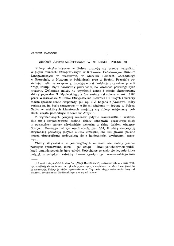 Zbiory afrykanistyczne w muzeach polskich / ETNOGRAFIA POLSKA 1966 t.10