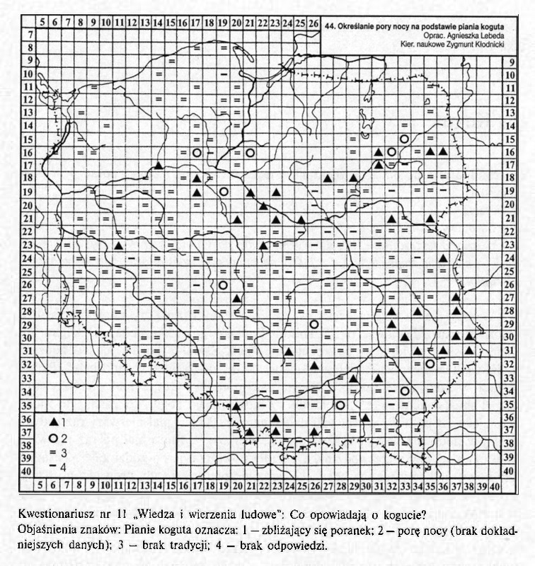 Określanie pory nocy na podstawie piania koguta/ Komentarze do Polskiego Atlasu Etnograficznego (mapy)